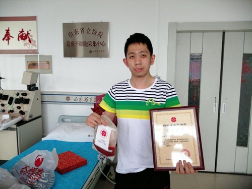 3月22日到達(dá)山東省立醫(yī)院后,孫浩博開(kāi)始按照醫(yī)學(xué)要求分段注射動(dòng)員劑。醫(yī)生擔(dān)心有生理反應(yīng),就給他開(kāi)了止痛藥,叮囑他如果有疼痛感覺(jué)可以吃藥止痛。具備藥學(xué)專業(yè)知識(shí)的他擔(dān)心服藥會(huì)影響造血干細(xì)胞的質(zhì)量,以堅(jiān)強(qiáng)的毅力,抗住了藥物反應(yīng),始終沒(méi)有服藥,他要以最好的狀態(tài)捐獻(xiàn)出質(zhì)量最好的造血干細(xì)胞。
