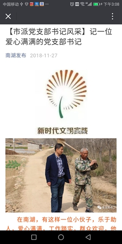 2018年11月27日,南湖發(fā)布全面介紹了韓彬駐村的工作風(fēng)采。2018年2月份他被選派到東港區(qū)南湖鎮(zhèn)尹家河村任職黨支部書記,駐村后扎下身子到田間地頭、大街小巷、炕頭庭院逐戶走訪,群眾農(nóng)忙不在家時(shí)就利用早上或晚上的閑暇時(shí)間挨家挨戶走。全村257戶基本走訪完成,既拉近了與群眾的距離,又了解了村情和民意。他采取精準(zhǔn)扶貧與精神扶貧、公益和工作相結(jié)合的工作方法先后開(kāi)展了扶貧助學(xué)(六一兒童節(jié)前夕爭(zhēng)引資金8.5萬(wàn)元為尹家河小學(xué)的孩子們發(fā)放書包、水壺,更換了桌椅),扶貧濟(jì)困:帶領(lǐng)貧困戶卜大爺去診斷評(píng)殘,并聯(lián)系醫(yī)院為他做了白內(nèi)障和息肉清除手術(shù)。他積極為老人開(kāi)展99公益理發(fā),自費(fèi)為村70歲以上老人愛(ài)心攝影等。在村莊發(fā)展規(guī)劃方面,積極爭(zhēng)取增減掛鉤項(xiàng)目,實(shí)施村莊改造,目前正在選址。在壯大集體經(jīng)濟(jì)方面,對(duì)上爭(zhēng)引資金100萬(wàn)元擬建扶貧大棚,以此收益作為集體經(jīng)濟(jì)收入,目前大棚已完成招投標(biāo)建設(shè)階段。