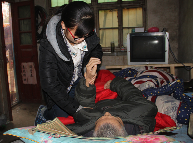 在炎熱的夏天,尚付雁每十分鐘要為父親翻身一次,時常用溫水擦拭身體,其間的勞累可想而知。每每聽到父親說沮喪的話,她總是這樣安慰父親:“爸,你在我們的家才完整,你不能說這種喪氣的話。”她繃緊牙關(guān),試圖控制眼角打轉(zhuǎn)的淚水。她深知父母在,家就在。