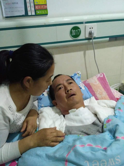 對妻子多年的付出和無微不至的照顧,躺在床上的劉軍武滿臉的幸福和感激:“俺媳婦,對我真是沒的說,這么多年,真是苦了她。沒有她,就沒有今天的我!這些年我也勸過她:‘我這個樣子,帶給你的凈是拖累!齾s回答說:‘你現(xiàn)在這個樣子,我是你媳婦,就有責任照顧你,不管吃多少屈、受多少累,我都應該!’這不是一天兩天,二年多了,天天這樣。這輩子我欠她太多了,什么也做不了,什么也給不了她,如果有來生,我一定好好報答她!”說這話時,他的眼里不由得淚光閃爍。