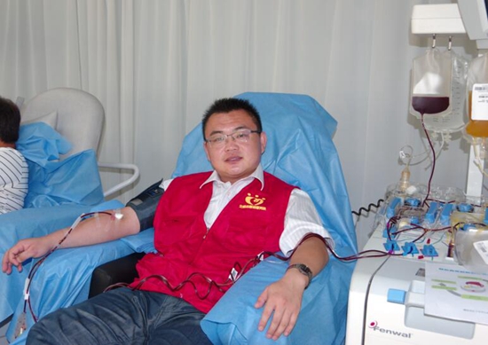 劉國能怎么也不會忘記2003年的一天,他的一位朋友因為車禍重傷,搶救過程中血液短缺,醫(yī)院只能緊急從濰坊市中心血站調(diào)援應(yīng)急。那緊迫、焦灼的場面一直讓他記憶猶新。從那時起,他決定要將無償獻血堅持下去,去幫助那些像朋友一樣迫切需要血液救命的人。這一堅持,就是17年。截至目前,劉國能已經(jīng)捐獻成分血(機采血小板)220次,折合成全血達18萬毫升,相當(dāng)于一個成年人全身總血量的30倍之多,多年來一直是濰坊市獻血先進個人。