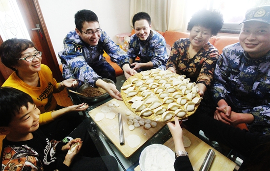 柳立蓮(右二)喊子弟兵回家吃餃子