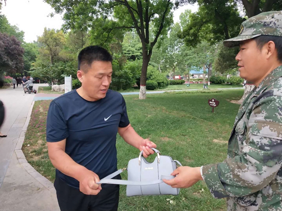 2019年5月24日,天氣晴好,是聊城市人民公園尋常的一天。吳懷尚正在打掃所屬片區(qū)時發(fā)現(xiàn)一個女士手包,包內(nèi)有失主財務證件若干。為及時與回來尋找失物的失主取得聯(lián)系,吳懷尚同志在原地等候。兩個小時后始終沒等到失主前來認領(lǐng)。為了能夠盡快找到失主,經(jīng)過多方溝通尋找終于聯(lián)系上了失主。當他將手提包及身份證和若干財務證件等原物遞到失主手里時,兩個人的手緊緊握在了一起。失主激動地說不出話來,立即拿出現(xiàn)金酬謝。吳懷尚卻說:“這是我們園區(qū)工作人員應該做的,心意我領(lǐng)了,但錢萬萬不能要!”
