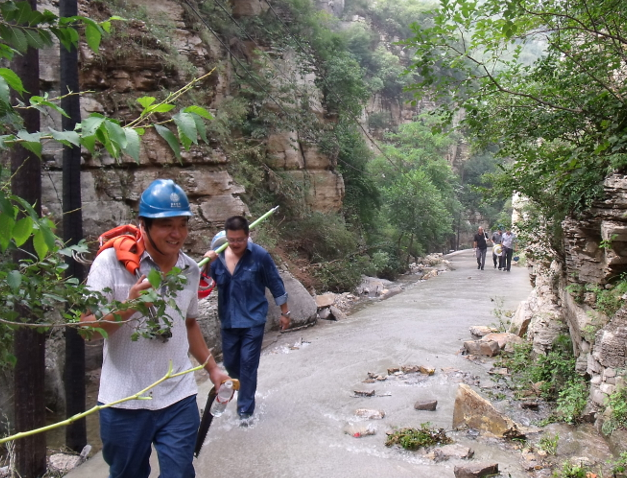 災(zāi)情就是命令!他立即和同事們冒著暴雨開始設(shè)備巡視和搶修,可是現(xiàn)場(chǎng)的情況卻是十分糟糕:山溝里洪水滾滾,泛著漩渦,柴草、木材、生活器具順流而下,處處充滿著危險(xiǎn)。有的地方橋梁被沖毀,他們就涉水而過;有的地方發(fā)生泥石流,他們就爬溝過坎繞道前行。他們心中只有一個(gè)信念:那就是讓災(zāi)區(qū)群眾早日重見光明。
