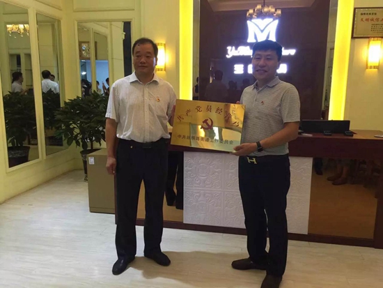 2016.7.12耿玉明(右) 接受周村區(qū)絲綢路街道蘇書(shū)記為公司頒發(fā)的“共產(chǎn)黨員經(jīng)營(yíng)戶”牌匾