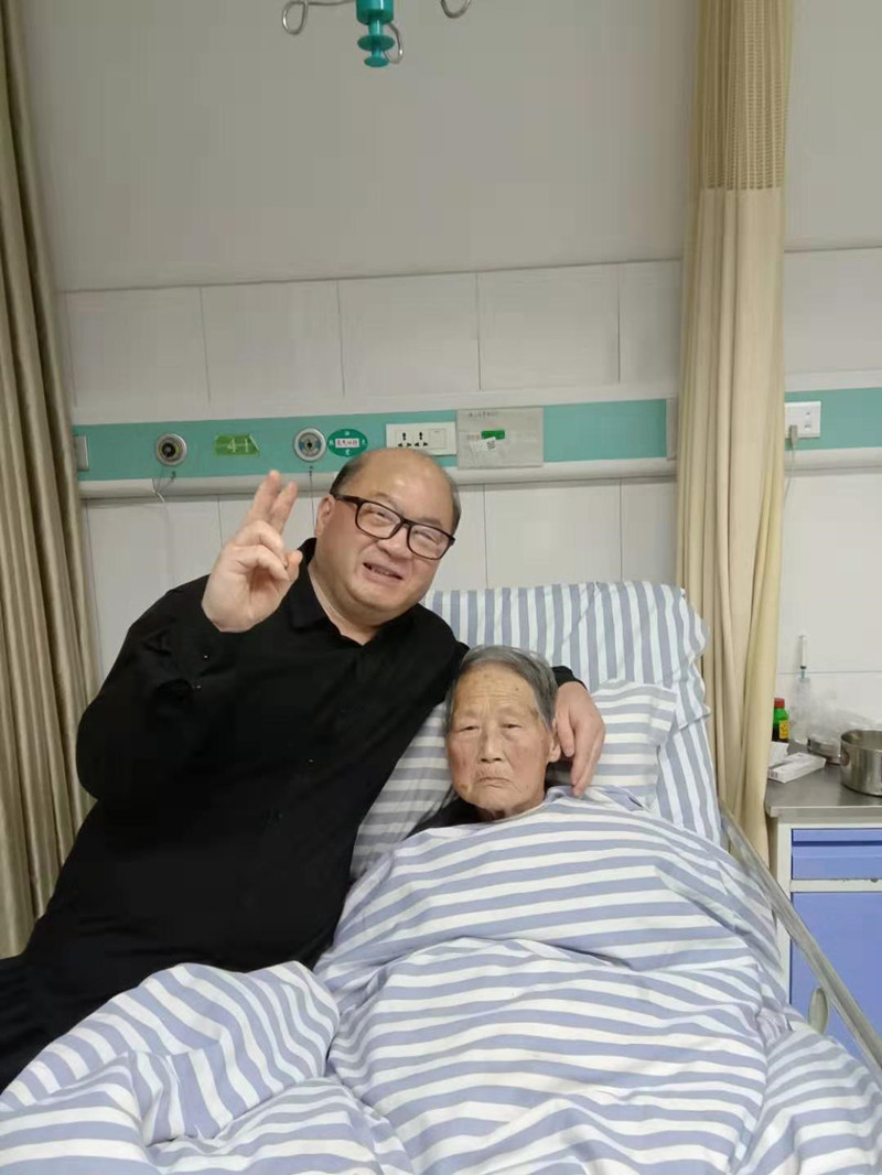 父親去世后,母親的身體也每況愈下。2017年清明節(jié)后母親突然失能了,行動不能自理,一日三餐需喂,照顧母親期間,他每天早上起來,都要給老母親換紙尿褲、穿衣、解手、洗臉、梳頭,再把老人抱到輪椅上推到客廳沙發(fā)上喂飯,這個(gè)過程下來就得一個(gè)多小時(shí),天天如此。工作期間,他經(jīng)常抽出時(shí)間回家看望母親。每天晚飯后,他再幫母親解手、換紙尿褲、脫衣、抱到床上睡覺。為方便照顧,他堅(jiān)持與老母親同床睡,晚間還要看看老人睡覺情況、掖掖被子。
