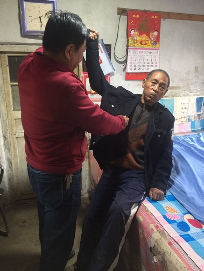 今年59歲的張文武,比哥哥張建國小9歲,張建國因年幼時罹患腦癱,身體行動不便,喪失了語言功能,生活自理能力較差。自張文武懂事起,他就發(fā)現(xiàn)他哥哥的身體跟自己有些不太一樣:后背駝的厲害、手指蜷縮不能伸直、走路歪歪斜斜!案绺,身體不好,你要照顧他。”從小,張文武的父母就經(jīng)常跟他這樣說。張文武有什么好吃的都留給哥哥,還經(jīng)常幫著哥哥穿衣服、洗臉、給他喂飯!靶r候,哥哥就是我的跟班。”張文武說。那時候,只要張文武一放學(xué),他就拿著凳子,扶著哥哥出去玩,張建國坐在凳子上看著弟弟和其他小朋友玩游戲,自己也樂的“呵呵”的。村里的小朋友看見張建國,經(jīng)常跟著他后面喊外號,只要讓張文武碰上了,他就會跑上去勸阻他們!10歲那年,我們村有一個個子比我高,長得也比我壯的小男孩,一直跟著我哥喊外號,我上去說他,他不但不理,還推我,我倆就打起來了!睆埼奈湔f。由于力量懸殊,張文武的鼻子被打的出血,張建國艱難挪著身體想給弟弟擦血,結(jié)果卻摔倒在地,張文武來不及擦鼻血,趕緊跑過去把哥哥扶起來。