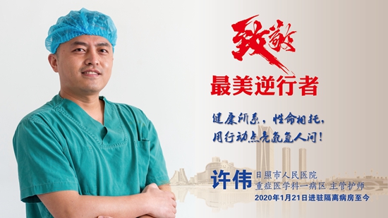 許偉,男,中共黨員,大學(xué)本科學(xué)歷,有10年急危重癥護(hù)理工作經(jīng)驗(yàn),每年連續(xù)榮獲市先進(jìn)個(gè)人,院級(jí)優(yōu)秀護(hù)士等榮譽(yù)稱號(hào),工作勤勤懇懇,任勞任怨,面對(duì)這次疫情,第一個(gè)提出申請(qǐng)進(jìn)入前線,同時(shí)是第一批進(jìn)入隔離病房的護(hù)理人員,他所在的病房都是接受確診的患者,自疫情爆發(fā)以來堅(jiān)守到現(xiàn)在,在個(gè)人和團(tuán)隊(duì)的努力下,已經(jīng)有13名新冠肺炎患者順利出院。