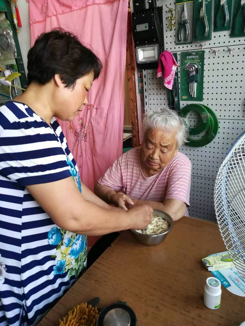 隨著婆婆年齡的增長,頭腦更加糊涂,身體健康也每況愈下,最后徹底離不開人了。就在這時,姜紅艷的母親因腦血栓也不能自理了。為了減輕兄長負(fù)擔(dān),更為了讓母親心情舒暢,姜紅艷決定與哥哥輪流照顧母親。為了能夠同時照顧婆婆和母親,2008年下半年,姜紅艷改行在鎮(zhèn)上開了一家小五金商店,白天兩位老人跟她住在店里,晚上再一起搬回家。在姜紅艷和丈夫的共同努力下,店里的生意一年比一年好,同時也把兩個媽媽照顧得體貼周到。
