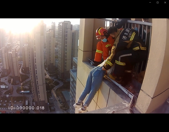2020年3月22日17時22分,天橋區(qū)清河消防救援站接到指揮中心調(diào)度命令,鑫苑名家小區(qū)有一名女子輕生跳樓,清河消防救援站立即出動1車8人趕赴現(xiàn)場。到場后發(fā)現(xiàn)輕生女子已飲下七八罐啤酒,情緒異常激動并拒絕任何人接近,有明顯輕生跡象。救援人員隨即對其進行勸說,就在此時輕生女子由于飲酒且體力不支身體突然失去重心,從33層樓頂滑落,身體懸在半空中,僅雙手抓住樓頂邊緣,隨時有墜樓危險。危急關頭,趙建華同志果斷出擊,在距離地面近百米,來不及做任何安全防護的情況下,連續(xù)翻越數(shù)個圍欄,沿樓頂邊緣快速移動,凌空一躍,僅用5秒鐘就到達輕生女子身邊,在女子松手的一瞬間,牢牢扣住了她的手腕。此時,該女子不停掙扎,意圖掙脫,趙建華同志冒著一同墜樓的危險,不畏犧牲,無論女子如何掙扎辱罵,始終未曾松手,為挽救該女子生命爭取了寶貴的時間,最終成功將該女子救至安全地帶,整個救援行動僅用了二十多秒。