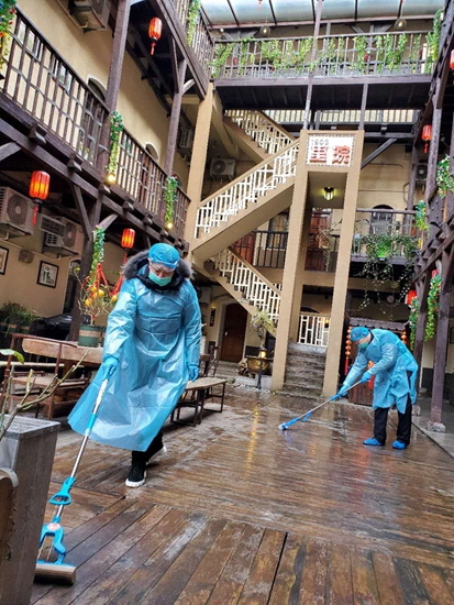 由于不能使用中央空調(diào),里院客?头坷锏膯误w空調(diào)不分晝夜連續(xù)運(yùn)轉(zhuǎn)了一個月,僅電費(fèi)一項(xiàng)就支出3萬多元,加之免費(fèi)提供食宿,客棧為此付出了十幾萬元的費(fèi)用。有同行問王亮,是否擔(dān)心酒店未來會受此影響損失客流,也有同行向他詢問政府征用補(bǔ)償?shù)膯栴}。當(dāng)聽到這些問題時,王亮說:“現(xiàn)在正處于咱們國家和社會的重要時刻,在防疫戰(zhàn)場上,不僅僅是我一個人做這些事情,那些醫(yī)務(wù)人員、公安民警以及街道社區(qū)工作人員都是在舍小家為大家,他們放棄了合家團(tuán)圓,奮戰(zhàn)在阻擊疫情的第一線,讓我深受感動,我也有責(zé)任也有義務(wù)用自己的實(shí)際行動為國家和社會做點(diǎn)什么。如果我們不共同努力,早點(diǎn)戰(zhàn)勝疫情,損失的將遠(yuǎn)不止酒店這點(diǎn)收入!