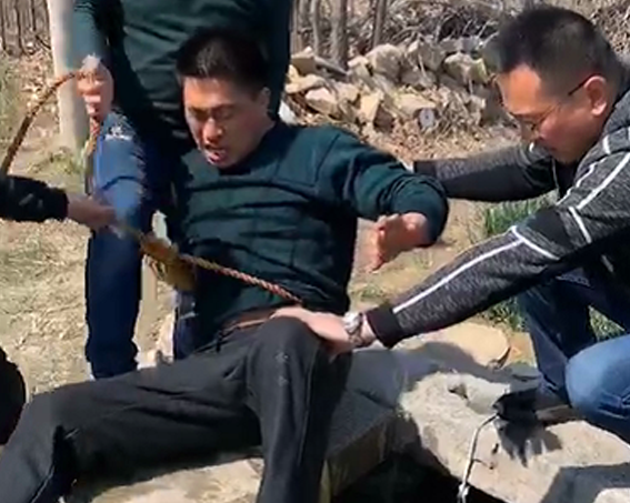 當時墜井的是一名4歲男童,隨家人挖野菜時不小心墜入水井。周新華正與同事吃午飯,聽到呼救聲,附近值班的道凹村防疫工作人員、志愿者和住戶都迅速趕到現(xiàn)場。得知是兒童墜井,他們立刻找來繩子,周新華主動請纓,拴上繩子進入井中,與男童的姑父一同展開施救。井中的二人商量,由周新華用手托著男孩,男孩的姑父抱住男孩,在其身上綁繩子并進行多次加固,慢慢將男孩往上遞,地上面的救援人員一邊往上拉一邊呼喊“堅持住、別松手,別松手……”。最終經過近半小時的救援,井外人員成功將小孩拉起。