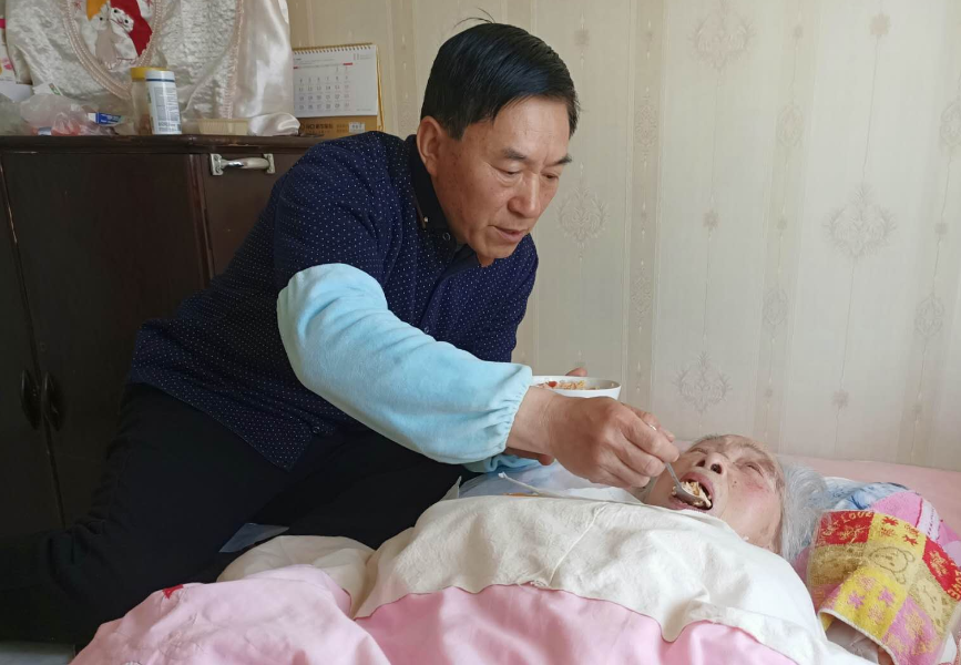尹西坤的愛人早年喪母,2012年,患有心臟病的岳父又患上了阿爾茨海默癥,身體也越來越差,2015年起基本失去自理能力。三位老人的重擔同時壓在尹西坤的肩頭,積勞成疾讓他患上了急性甲亢。就這樣,他一邊用藥治療,一邊絲毫不敢懈怠對老人的照顧。直到2018年,岳父因心臟病發(fā)去世。