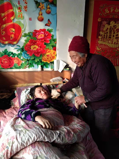起初,劉洪蘭既要為兒媳端吃送喝,又要照看年幼的孫女。為防止兒媳生褥瘡,劉洪蘭就給兒媳翻身,活動(dòng)四肢,做做按摩。因?yàn)閮合贝笮”闶Ы,劉洪蘭還要幫兒媳處理大小便,“大冬天拉在棉褲里,給她脫的時(shí)候整條腿都是,把腿擦干凈了再給她洗棉褲。也生氣啊,可是生氣能有什么辦法!闭f到這,劉洪蘭一臉憨實(shí)的笑容。
