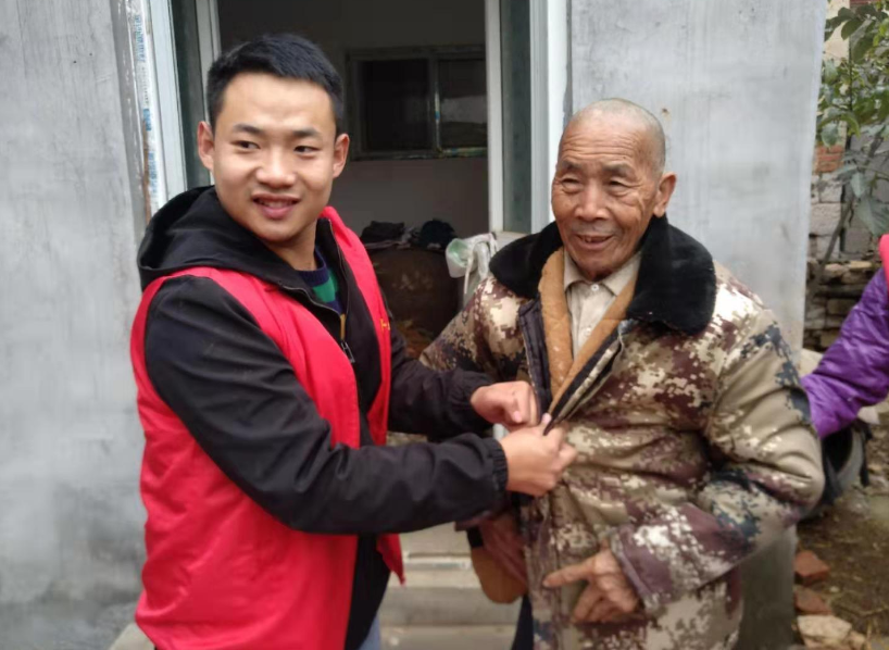 事業(yè)上的成功沒(méi)有讓薛松迷失自我,他深知還有許多像自己一樣的殘疾人需要幫助,他想用自己的方式來(lái)回饋社會(huì)。2018年冬天,薛松在泗水縣南部一個(gè)小山村送貨時(shí),遇到一位雙腿跪著的老人卷縮在家門(mén)口,雙手拿著一長(zhǎng)一短的小木棍做為拐杖,行動(dòng)十分不便。薛松與他交談后得知,這是一位患有腦癱的孤寡老人,常年一個(gè)人生活。薛松隨老人進(jìn)屋后,被眼前窘迫的環(huán)境所震撼,拍了幾張照片后便回家了,那一夜他反側(cè)難眠,決定把老人的情況發(fā)到朋友圈,呼吁身邊的愛(ài)心人士幫幫這位孤寡殘疾老人。令薛松意外的是,他的這一舉動(dòng)得到了很多人的支持,并同愛(ài)心人士一起帶著棉衣、棉被等愛(ài)心物資再次來(lái)到老人家中,當(dāng)給老人穿上新棉衣的那一刻,他流下了感動(dòng)的淚水。讓他沒(méi)想到的是,一條朋友圈可以讓一位老人過(guò)上一個(gè)溫暖的冬天,他感覺(jué)一切都是值得的。回城后,薛松就萌發(fā)了成立一個(gè)幫扶困難老人愛(ài)心團(tuán)隊(duì)的想法。