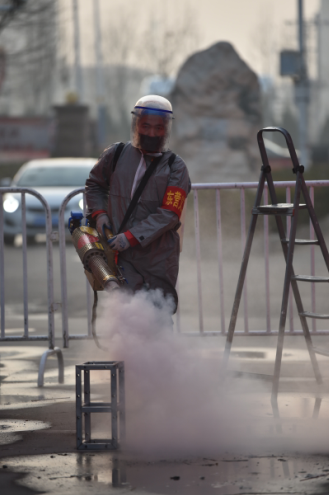 背著30多公斤的藥水和彌霧機,一天10多個小時走下來,第二天累得腰酸背痛腿發(fā)軟!暗谝惶欤麣⒔Y(jié)束晚上回到家已經(jīng)十一點半了,連續(xù)消殺了14個小區(qū)。”第二天,他依然按時出現(xiàn)到社區(qū)防疫一線。為了節(jié)省時間,每天中午只能吃口熱乎的方便面。消殺時,有的居民看著他們辛苦,給他們送去食物。2月1日,在天鵝花園消殺時,居民把自己包的餃子送到了他們手里,蹲在路邊吃著熱乎的餃子,林寧心里也感覺很溫暖。