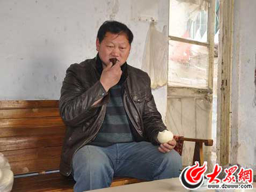 郭慶剛的生意一年有二三十萬元的利潤(rùn),但他一家人卻過得極其清貧。他每天的飯菜時(shí)常是煎餅、饅頭和咸菜,除了夏天偶爾買件一二十塊錢的汗衫,幾年來他沒買過一件新衣服,賺來的錢幾乎全部用在了償還債務(wù)上。為了盡快還清欠款,郭慶剛沒白沒黑的工作,在生意忙的時(shí)候,晚上打通宵裝集裝箱,白天走村串戶收大姜,時(shí)常半月二十天都睡不上一個(gè)囫圇覺,很多時(shí)候,郭慶剛忙起來一天的飯都忘了吃。