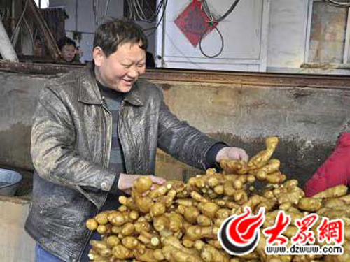 郭慶剛是大姜之鄉(xiāng)——東夏鎮(zhèn)一位地地道道的農(nóng)民,長(zhǎng)期從事大姜購(gòu)銷生意。在當(dāng)?shù),通常都是姜農(nóng)把姜賒給郭慶剛,他賣掉后再把錢給姜農(nóng)。這種先賒姜再付錢的營(yíng)銷方式是建立在誠(chéng)信基礎(chǔ)上的。郭慶剛的信譽(yù)一直都非常好,大家也愿意把姜賒給他。不少姜農(nóng)把姜送到他那里記個(gè)數(shù)就走,等他把姜稱好,劃個(gè)價(jià)之后再把欠條送給姜農(nóng)。