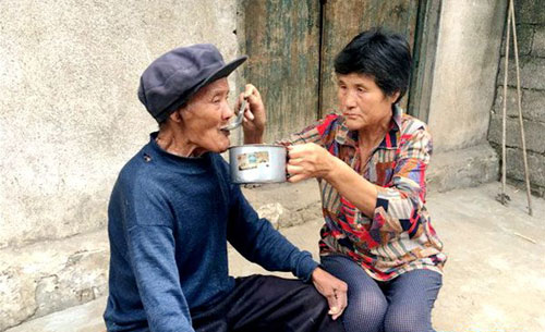 只為對(duì)兒媳的一個(gè)承諾,十多年間,她每天做著同樣的事情:早晨騎著電動(dòng)自行車趕往3里路以外的親家家中,做飯、喂飯、清理床上穢物,陪親家聊天,傍晚時(shí)分再次趕到親家重復(fù)著上午的事情,直到夜色昏沉才拖著疲憊不堪的身子回家。