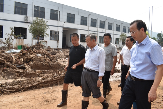 隨后蔣紅喜帶領(lǐng)留守在廠內(nèi)的高管人員對(duì)車間、倉(cāng)庫(kù)內(nèi)進(jìn)行了簡(jiǎn)單的堵水防洪處理。眼看街道上的水已經(jīng)沒(méi)過(guò)廠區(qū)門口臺(tái)階,道路已經(jīng)無(wú)法通行,幾名高管想留在三樓等雨勢(shì)緩和積水下降后再走,蔣紅喜堅(jiān)決不同意,果斷帶領(lǐng)大家冒雨從南側(cè)山楂園翻山撤離,等大家連滾帶爬撤到高處時(shí),山洪已經(jīng)沖毀院墻,遙望廠區(qū)一片汪洋。在所有人都沮喪迷茫時(shí),蔣紅喜說(shuō)的第一句話是“萬(wàn)幸人都撤出來(lái)了!”因?yàn)樗墓麛喑冯x,全廠306名員工無(wú)一人員傷亡!
