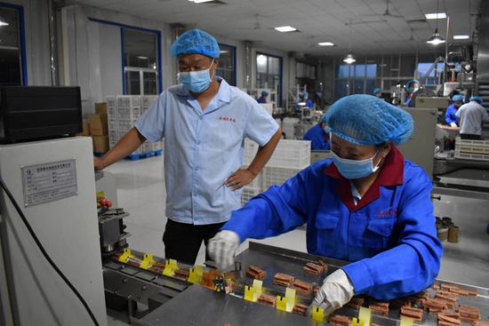 每年的8月下旬,正是山楂制品的生產(chǎn)旺季,因洪災(zāi)耽誤了20天的黃金生產(chǎn)期后,金潮來(lái)已經(jīng)擠壓了五六百個(gè)生產(chǎn)訂單。蔣紅喜每天忙碌于生產(chǎn)現(xiàn)場(chǎng)與一線市場(chǎng)之間,聯(lián)系客戶,說(shuō)明情況,交付產(chǎn)品,積極履約。