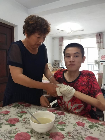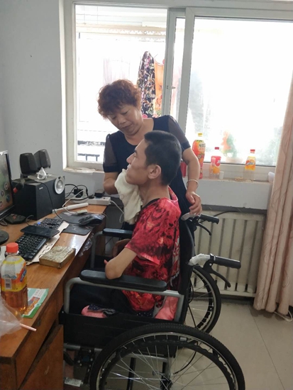 不離不棄,悉心照顧兒子的偉大母親。在多年的尋醫(yī)問藥的過程中,馬會(huì)芳和兒子也慢慢接受了這個(gè)殘酷的現(xiàn)實(shí),母子倆決定勇敢地面對(duì)現(xiàn)實(shí),樂觀地面對(duì)生活。為了不讓兒子感到生活苦悶、無聊,馬會(huì)芳省吃儉用,為兒子買了一臺(tái)電腦,兒子也慢慢地學(xué)會(huì)了使用電腦。小元在患病之初就非常的懂事,怕母親太辛苦,就不吃太多的飯,不喝太多的水,只為減少上廁所的次數(shù)。小元只上到小學(xué)三年級(jí),很多字還不認(rèn)識(shí),他就讓母親買了一本新華字典,用僅能抬起的一首手翻看字典,如今這本字典不知被小元看了多少遍。自從9年住進(jìn)樓房以后,小元沒有下過一次樓,每天都是母親喂飯,母親攙扶著去衛(wèi)廁所,日復(fù)一日,年復(fù)一年,這樣的生活情景,在馬會(huì)芳看來,再平常不過了。每當(dāng)馬會(huì)芳想起來兒子的病情的時(shí)候,她背著兒子不知道流下了多少淚水,作為母親的她深知,只有她堅(jiān)強(qiáng)了,兒子才有繼續(xù)活下去的信心和決心。兒子患病的這18年,她舍不得多花一分錢,每次看到兒子痛苦表情的時(shí)候,她恨不得自己去替兒子承受這一切,能夠讓兒子重新站起來,是她最大的心愿了。今年29歲的小元,在母親的精心照料下,生活的很幸福、很快樂。馬會(huì)芳用愛創(chuàng)造了一個(gè)生命奇跡,用18年的堅(jiān)守詮釋了母愛的偉大。