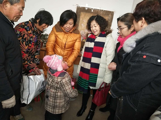 官斐斐(左三))和“愛心媽媽”看望貧困兒童