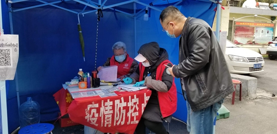 劉玉考所居住的金山社區(qū)面積不足1平方公里,有居民小區(qū)42個,2324戶,6808人,居住人口密度較大、社區(qū)工作人員少且以女性為主。疫情發(fā)生后,社區(qū)全部工作人員都投入到了抗擊疫情的戰(zhàn)斗中,工作力量卻仍然捉襟見肘。社區(qū)防控力量薄弱、防控壓力大的問題,劉玉考看在眼里,急在心里!拔沂且幻伯a(chǎn)黨員。面對疫情,我理應(yīng)沖鋒在前,為打贏疫情防控阻擊戰(zhàn)做出黨員應(yīng)有的示范帶頭作用!贝竽瓿醵秃敛华q豫地報名加入了社區(qū)抗疫志愿者的隊伍,以一名老黨員的身份成為了沖鋒在社區(qū)抗疫一線的“戰(zhàn)士”。疫情中的泰城格外的寒冷,但他卻從未間斷志愿服務(wù)工作,而且一干就是20多天。他每天都堅持守護(hù)在社區(qū)防控點(diǎn)開展一線防控工作,對進(jìn)出小區(qū)的居民測量體溫、辦理出入登記,并在各小區(qū)輪流進(jìn)行巡查,積極調(diào)查疫情防控的薄弱環(huán)節(jié)。在日常的志愿巡查中,他發(fā)現(xiàn)多處被居民破壞的封路圍擋,及時向社區(qū)報告,幫助社區(qū)防疫工作“找漏洞,補(bǔ)短板”。