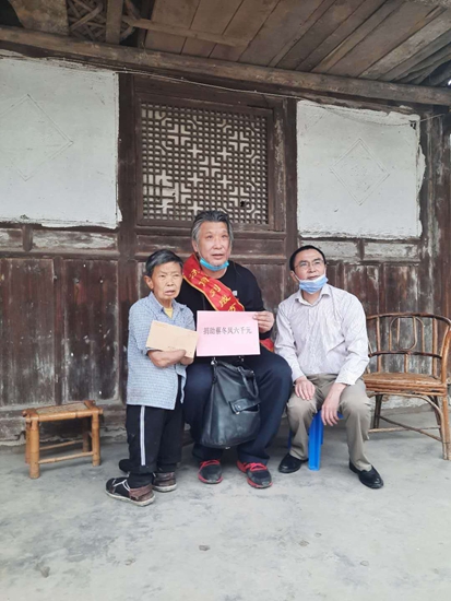 2020年4月,劉成方偶然從新聞里看到四川樂(lè)山79歲、沒(méi)手沒(méi)腳的蔡冬鳳身殘志堅(jiān)、孝親敬老的事跡很受感動(dòng),帶領(lǐng)濟(jì)南慈善義工一行5人以愛(ài)涌泉城的精神不遠(yuǎn)千里來(lái)到峨眉,為蔡冬鳳送上6000元慰問(wèn)金和禮品,并贈(zèng)送了一幅字畫(huà)《花開(kāi)富貴》。劉成方現(xiàn)場(chǎng)與樂(lè)山市慈善總會(huì)簽訂了蔡冬鳳好人基金協(xié)議,今后每年都向蔡冬鳳基金捐獻(xiàn)。