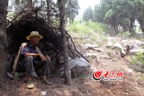 四年的時間里,他吃過早飯只身上山,不分春秋冬夏。冬季寒冷刺骨,夏季烈日炎炎,盛夏暴雨天氣是常有的事情。雨季來臨,他滿身淋得濕漉漉的。自打一次突如其來的暴雨把他淋得措手不及之后,在半山腰,馬道沁就在山腰森林處用樹枝搭建了一個臨時的窩棚,上面蓋著柴草和塑料布,用于避雨休息。他給窩棚起了名字,“樂在其中”幾個大字,抒發(fā)了自己的情感。下雨時,眼前漫山水霧白茫茫一片,他便藏身在這處山林間的小窩棚里悠然觀山聽雨。