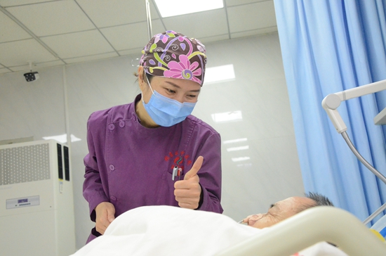 在湖北工作的38天中,最讓耿艷菲難忘的是在方艙醫(yī)院給一名患者過生日。2月21日的夜班,耿艷菲所管轄的病區(qū)正好有位患者過生日,由于方艙醫(yī)院內(nèi)條件有限,沒辦法買到蛋糕。為了讓患者過個難忘的生日,耿艷菲和隊友們特意用牛奶擺成“27”的形狀,把橙子擺成心形,寓意是心想事成,這個驚喜讓患者非常感動,并且說這是他過的最難忘的一個生日。耿艷菲說,看到戴著口罩的患者流露出幸福的眼神,贏得了患者的滿意,我覺得我所做的一切,值了。