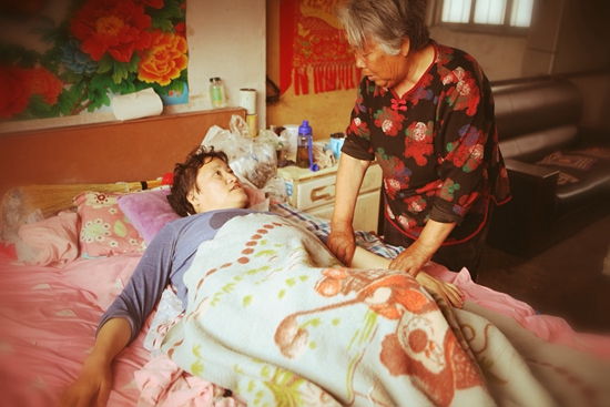 這些年來,劉洪蘭既要為兒媳端吃送喝,又要照看年幼的孫女。為防止兒媳生褥瘡,劉洪蘭就給兒媳翻身,活動(dòng)四肢,做做按摩。因?yàn)閮合贝笮”闶Ы瑒⒑樘m還要幫兒媳處理大小便,“大冬天拉在棉褲里,給她脫的時(shí)候整條腿都是,把腿擦干凈了再給她洗棉褲。也生氣啊,可是生氣能有什么辦法!闭f到這,劉洪蘭一臉憨實(shí)的笑容。