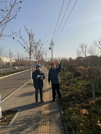 2019年11月30日孫林(圖右)與同事巡視10kV燕園支線