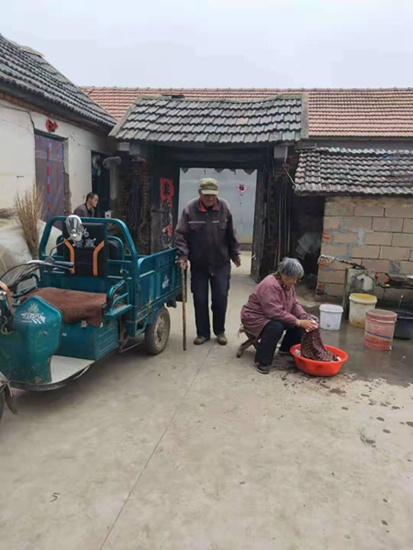 唐秀鳳的婆婆生養(yǎng)了12個(gè)孩子,12個(gè)孩子中3個(gè)男孩,9個(gè)女孩,唐秀鳳的丈夫在兄弟中排行老大,二弟因?yàn)榧依镓毨,年輕時(shí)去了東北討生活,其他姐妹各自成家后,照顧家里的責(zé)任也就落在唐秀鳳一家身上。早年的時(shí)候,唐秀鳳的婆婆和“三兒”住在老屋,因?yàn)榧依镉惺地需要耕種,平日里她都是把吃的送到老屋。而隨著時(shí)間推移,婆婆年老體弱,老屋也年久失修,唐秀鳳就把婆婆跟小叔子接到自己家住,“不就多添個(gè)碗添雙筷子,養(yǎng)得起”,唐秀鳳絲毫沒(méi)有猶豫,把照顧的活都攬了過(guò)來(lái)。然而,唐秀鳳自己有三個(gè)孩子,再加上婆婆和小叔子,一家七口人的生活重?fù)?dān)都?jí)涸诜蚱薅说募缟,僅靠種地的收入,日子其實(shí)過(guò)的很拮據(jù)。對(duì)于他家的特殊情況,村里每年給予補(bǔ)助五百斤糧食,后來(lái)國(guó)家出臺(tái)相關(guān)的幫扶政策,村里給小叔子辦了低保和殘疾人證,現(xiàn)在一年也能拿到將近八千塊錢!耙郧凹依锔F能養(yǎng)的起,現(xiàn)在條件好了更要照顧好”唐秀鳳說(shuō)。
