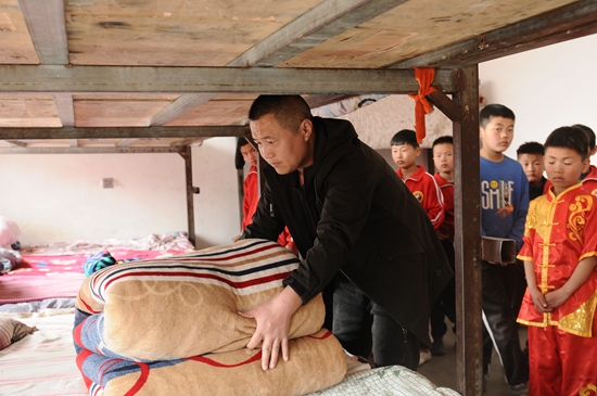 河南臺前的田慶超,在很小的時候,媽媽就去世了。顏廷龍還記得,孩子父親送慶超到武校時,慶超只有6歲,大冷天只穿著單薄破舊的衣服,小臉小手凍得通紅。慶超父親把他留在武校就找了個理由離開了,從此再也沒有回來,也沒有給孩子交過一次費用。每年春節(jié),學(xué)校里的孩子陸陸續(xù)續(xù)被父母接走,慶超沒有人來接,這個時候,顏廷龍總會把孩子帶到自己家里過年。一次,六一兒童節(jié),慶超告訴校長,想家了,想爸爸了。顏廷龍為了滿足孩子的心愿,驅(qū)車帶他回家。到家后,卻發(fā)現(xiàn)大門緊關(guān),鎖都生銹了。顏廷龍通過打聽,找到了慶超的奶奶。奶奶見到孫子后,一時沒有反應(yīng)過來,等認出后連連驚嘆:“慶超長高了,長胖了,長成大小伙子了!”奶奶通過鄰居把慶超家的門打開,院里雜草叢生,已經(jīng)很久沒有住過人了。奶奶無力撫養(yǎng)慶超,含淚對他說:“孩子,你師父人好,管你吃住,還教你練武,以后你跟著師父好好練!睉c超回答:“奶奶,師父對我很好,我一定跟著師父好好練!”回到武校之后,慶超刻苦練武,變得更加用功。
