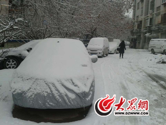 21日早上七點(diǎn)半,平時(shí)早已出發(fā)的私家車今天都停在原地,私家車主大多放棄開車,有的車主還給愛車提前穿上衣服迎接大雪到來