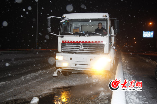 雖然市民關(guān)注的關(guān)鍵詞是“堵”,但今天濟(jì)南的道路卻“意外暢通”。記者在濟(jì)南市交警部門獲悉,從今天早上6點(diǎn)起,濟(jì)南交警便開始對高架橋上下匝道口、城市主次干道的機(jī)動車車道撒融雪劑,市區(qū)內(nèi)經(jīng)十路、舜耕路、旅游路、經(jīng)七路、大緯二路以及外環(huán)路等市區(qū)道路雖通行緩慢,但均未出現(xiàn)結(jié)冰現(xiàn)象。此外,開車上路的比平日明顯減少,也是道路不堵的一個原因。