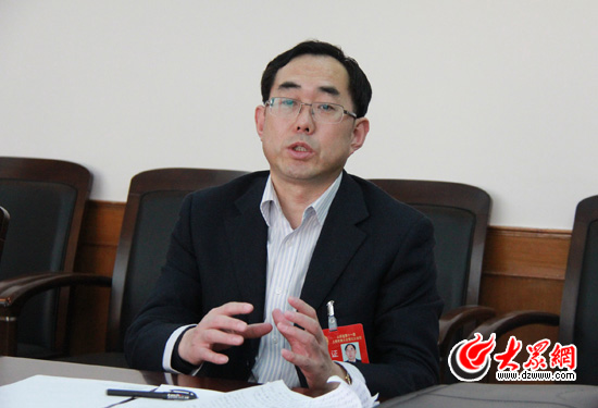 省人大代表、山東電力集團(tuán)公司副總工程師王傳慶在分組審議現(xiàn)場(chǎng)