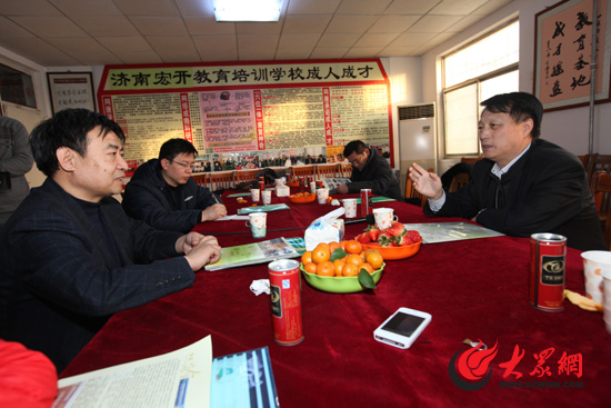 省政協(xié)常委張樹(shù)驊和劉德龍聽(tīng)取濟(jì)南宏開(kāi)教育培訓(xùn)學(xué)校校長(zhǎng)翟振杰的介紹