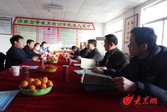 省政協(xié)常委張樹驊和劉德龍聽取濟南宏開教育培訓(xùn)學(xué)校校長翟振杰的介紹
