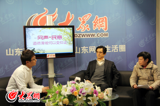 從“小悅悅”事件到“老人摔倒無(wú)人敢扶”,從“毒奶粉”、“地溝油”到“瘦肉精”,如今的社會(huì)是否已經(jīng)進(jìn)入了“道德滑坡”的時(shí)代?這種道德的“滑坡”如何變?yōu)椤把鲋埂?“兩?huì)”期間,大眾網(wǎng)《網(wǎng)聲·民意》欄目邀請(qǐng)到了省政府參事、省政協(xié)委員、山東大學(xué)儒學(xué)高等研究院教授馬來(lái)平和全國(guó)道德模范提名獎(jiǎng)獲得者、省道德模范張業(yè)愛(ài),并現(xiàn)場(chǎng)與龍口“最美女孩”刁娜連線。委員、道德模范共談如何如何抑止“道德滑坡”現(xiàn)象。