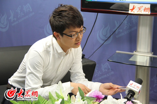 大眾網(wǎng)記者與龍口“最美女孩”刁娜現(xiàn)場連線。(劉寶才 攝)