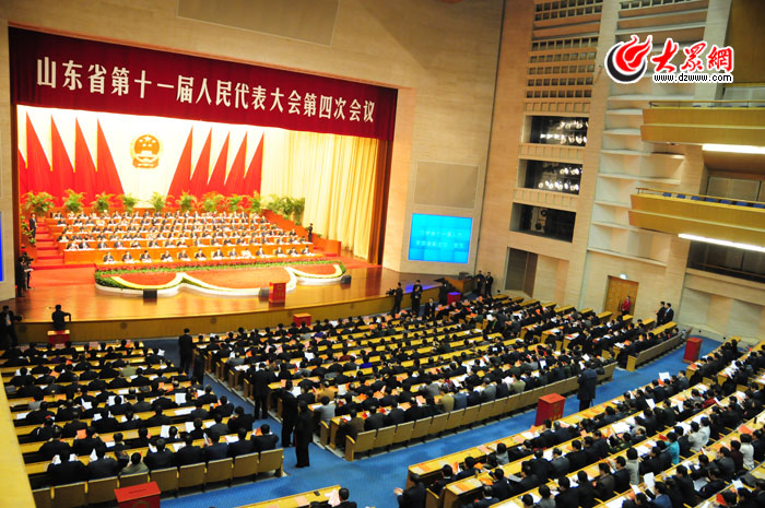 大眾網(wǎng)濟南2月17日訊(記者 曹亮 隋喬 韋輝) 今天下午,山東省十一屆人大四次會議完成各項議程在濟南勝利閉幕,圖為閉幕大會現(xiàn)場。
