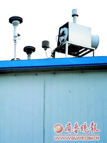在濟南市監(jiān)測站監(jiān)測子站,類似“蘑菇”的就是監(jiān)測PM2.5的旋風(fēng)式切割機。(資料片)