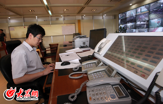 工作人員在安全生產(chǎn)指揮中心內(nèi)控制和監(jiān)控生產(chǎn)情況。(盛堃 攝影)