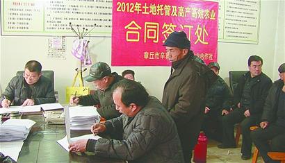 曹雷 周歷 卞思杰 來源: 濟(jì)南日?qǐng)?bào)[提要] 近日,章丘市龍山街道19個(gè)地塊流轉(zhuǎn)簽約儀式舉行,2000多名農(nóng)民變成了“工人”。近日,本報(bào)記者兵分三路,分別來到歷城區(qū)、市中區(qū)、章丘市進(jìn)行調(diào)查采訪,探尋濟(jì)南土地流轉(zhuǎn)的發(fā)展現(xiàn)狀。