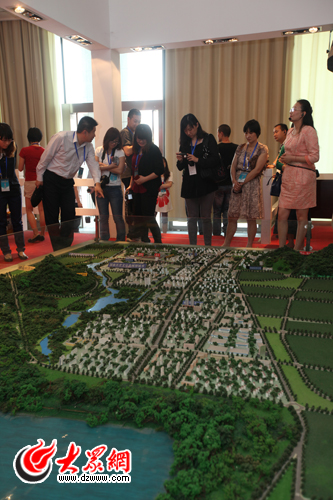 今天上午,科學發(fā)展新山東——“魯花杯”第八屆中國網(wǎng)絡媒體山東行采訪團參觀曲阜片區(qū)大遺址保護展示沙盤。(盛堃 攝影)
