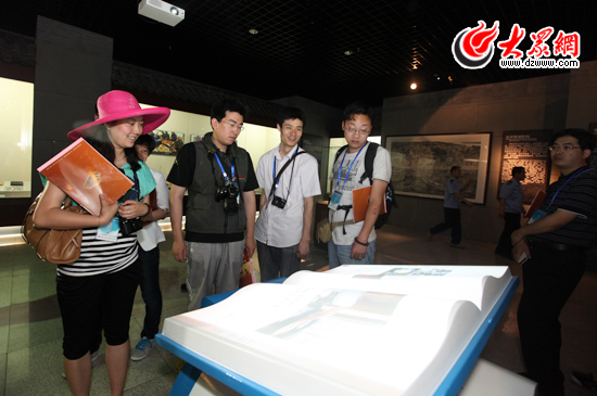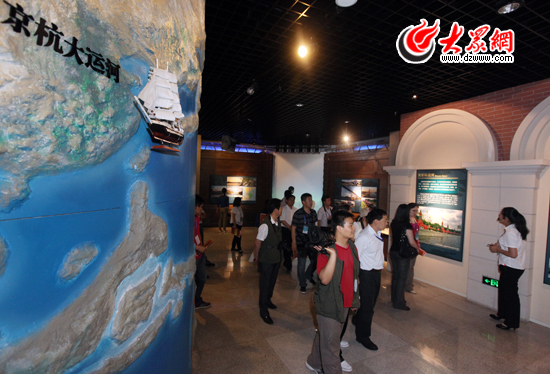 采訪團(tuán)記者參觀中國(guó)運(yùn)河博物館。(盛堃 攝影)