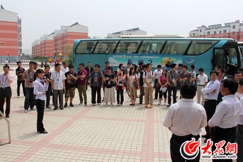 媒體行采訪團東線記者前往萊蕪市雍和園社區(qū)采訪。(馬鑫 攝)