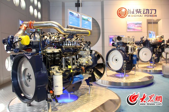 走進(jìn)濰柴集團(tuán)的高新產(chǎn)業(yè)園科技展館,一臺臺發(fā)動機(jī)顯示著濰柴動力自主創(chuàng)新的實(shí)力。講解員陳真指著一臺綻放著肽藍(lán)色光芒的“藍(lán)擎”WP12發(fā)動機(jī)說,這臺高速大功率“藍(lán)擎”發(fā)動機(jī)達(dá)到國Ⅴ排放標(biāo)準(zhǔn),在經(jīng)濟(jì)性、可靠性、環(huán)保性等方面均達(dá)到了國際領(lǐng)先水平,它也是中國首臺擁有完全自主知識產(chǎn)權(quán)的大功率歐Ⅲ發(fā)動機(jī)。